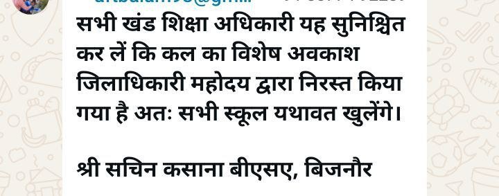 बड़ी खबर: उत्तर प्रदेश के इस जिले में कल की छुट्टी कैंसिल,सभी स्कूल खुलेंगे, बीएसए साहब ने लिखित के माध्यम से शिक्षकों को दी यह जानकारी