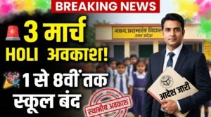 बड़ी खबर: उत्तर प्रदेश के इस जिले में एक से आठवीं तक के स्कूलों में 3 मार्च होली का स्थानीय अवकाश घोषित, बीएसए साहब का आदेश जारी हमीरपुर, 18 फरवरी 2026। होली के अवसर पर जनपद हमीरपुर में संचालित कक्षा नर्सरी से लेकर कक्षा 8 तक के सभी विद्यालयों में 3 मार्च 2026 को स्थानीय … Continue reading बड़ी खबर: उत्तर प्रदेश के इस जिले में एक से आठवीं तक के स्कूलों में 3 मार्च होली का स्थानीय अवकाश घोषित, बीएसए साहब का आदेश जारी
