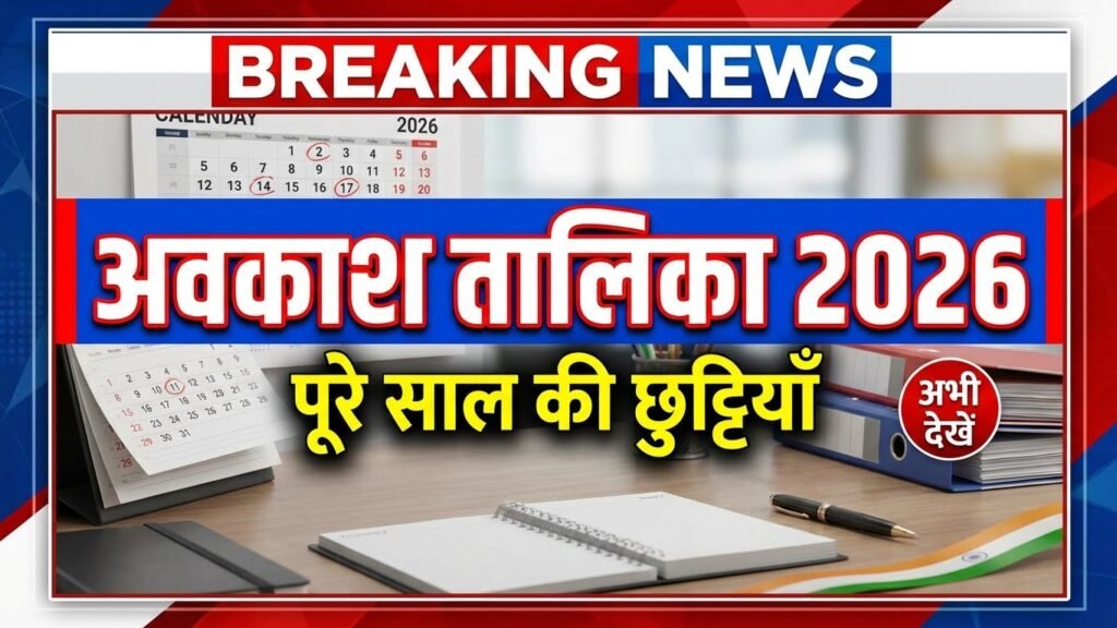 बिग ब्रेकिंग न्यूज: शासन ने जारी की परिषदीय विद्यालयों की अवकाश तालिका 2026, नीचे लिंक पर क्लिक करके देखें एवं डाऊनलोड करें नीचे लिंक पर क्लिक करके PDF डाउनलोड करें 👇👇 https://drive.google.com/file/d/1MB87AZYzPRr1xgC0gRugyjRzoOgWoKCy/view?usp=drivesdk Read More उ0प्र0 शासन द्वारा वर्ष 2026 की अवकाश तालिका जारी, देखें व डाउनलोड करें Holiday table for the year 2026 by … Continue reading बिग ब्रेकिंग न्यूज: शासन ने जारी की परिषदीय विद्यालयों की अवकाश तालिका 2026, नीचे लिंक पर क्लिक करके देखें एवं डाऊनलोड करें