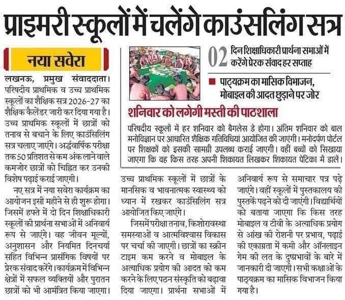 प्राइमरी स्कूलों में चलेंगे काउंसलिंग सत्र, पढ़िए सूचना April 4, 2026 by Jaswant Singh प्राइमरी स्कूलों में चलेंगे काउंसलिंग सत्र, पढ़िए सूचना