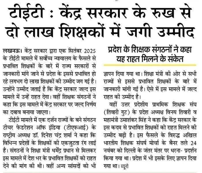 टीईटी प्रकरण: केन्द्र सरकार के रुख से दो लाख शिक्षकों में जगी उम्मीद